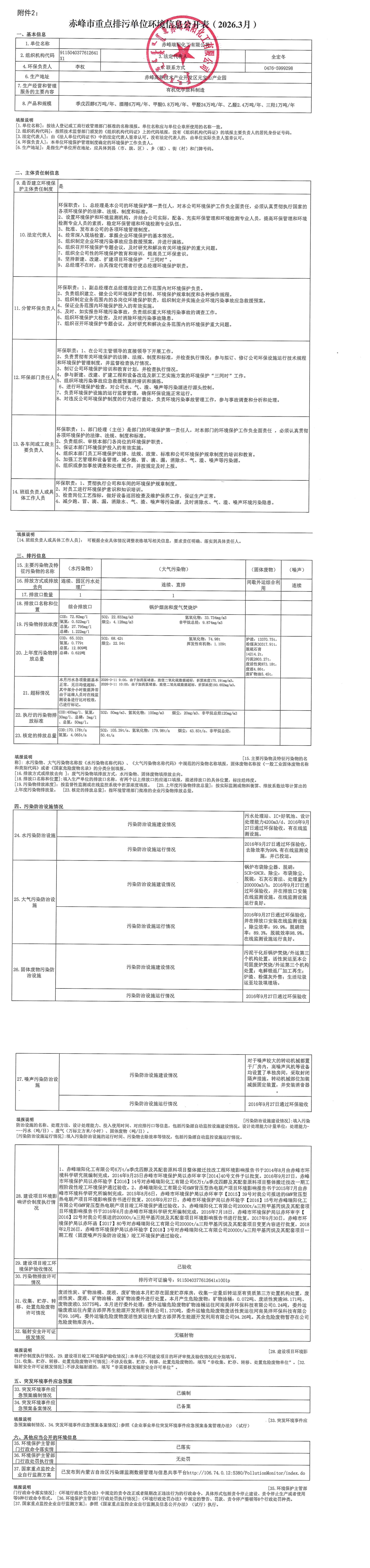 赤峰市重點排污單位環(huán)境信息公開表【2026.3】